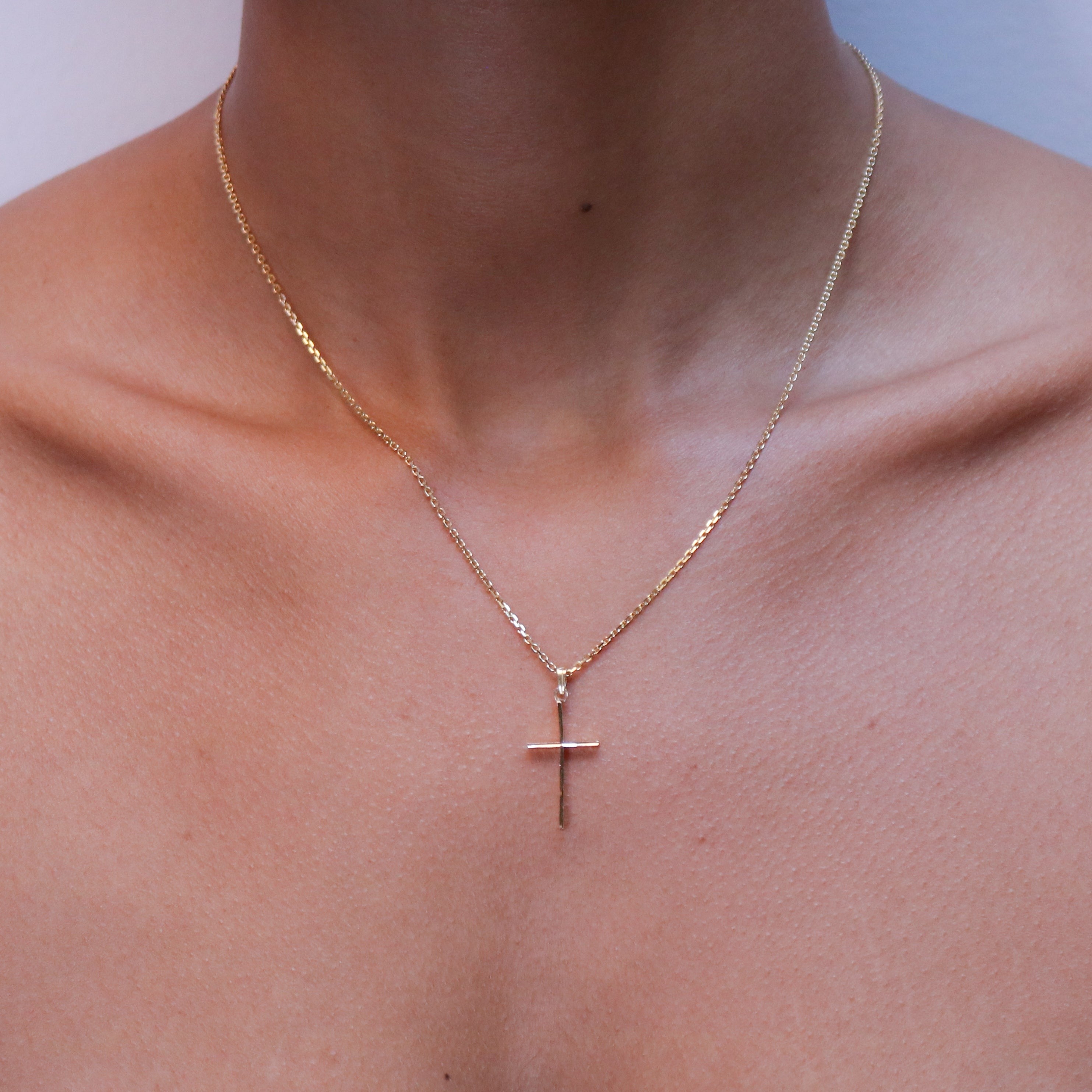 - 16" 18k yellow gold chain with 18k custom cross charm